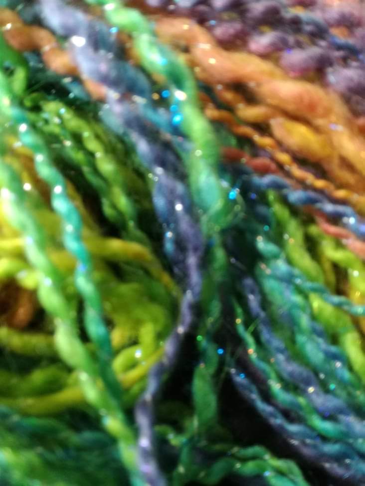 Handspun from handcarded art batts, that are made with handdyed wool.