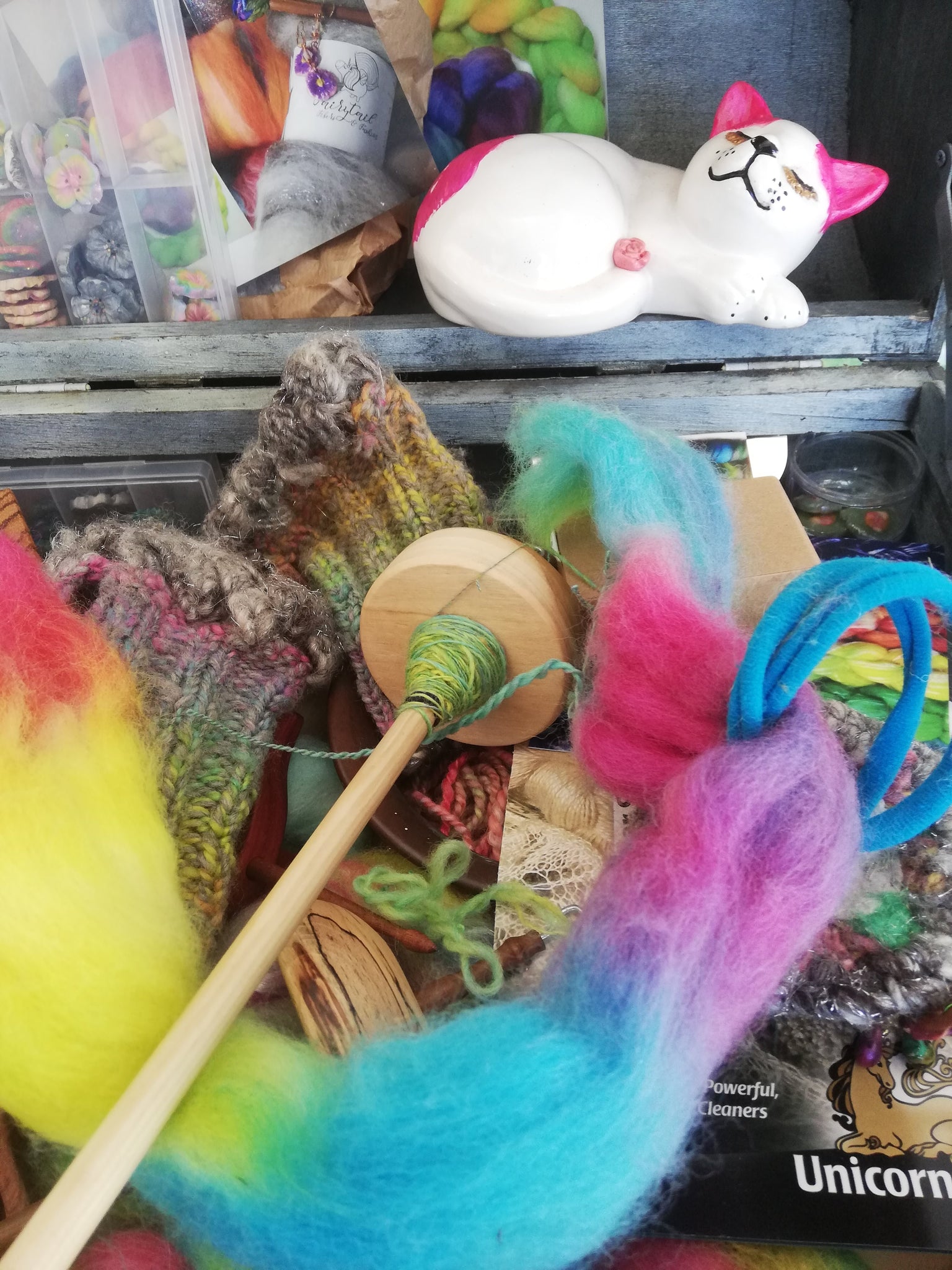 NB> Spin altijd boven een zachte ondergrond zoals tapijt of gras als je buiten bent. Je kan de wol voorraad ook onder je zetten. Of de tol boven een tafel houden. Stuk is stuk.