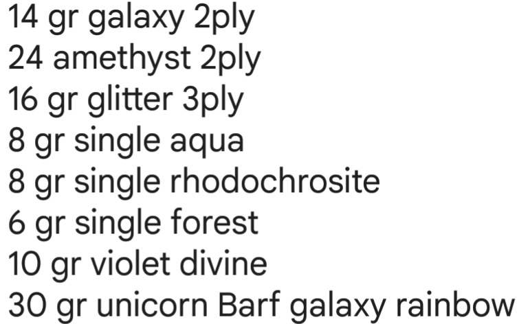 100 gram verdeeld over minimaal 5 bolletjes garens uit onze shop.